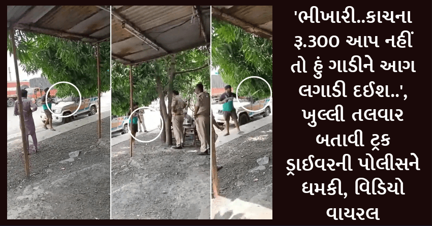 ‘ભીખારી..કાચના રૂ.300 આપ નહીં તો હું ગાડીને આગ લગાડી દઈશ..’, ખુલ્લી તલવાર બતાવી ટ્રક ડ્રાઈવરની પોલીસને ધમકી, વિડિયો વાયરલ