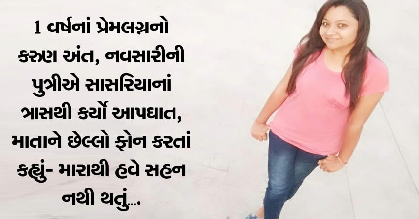 1 વર્ષનાં પ્રેમલગ્નનો કરુણ અંત, સાસરિયાનાં ત્રાસથી કર્યો આપઘાત, નવસારીની પુત્રીએ માતાને છેલ્લો ફોન કરતાં કહ્યું- મારાથી હવે સહન નથી થતું….