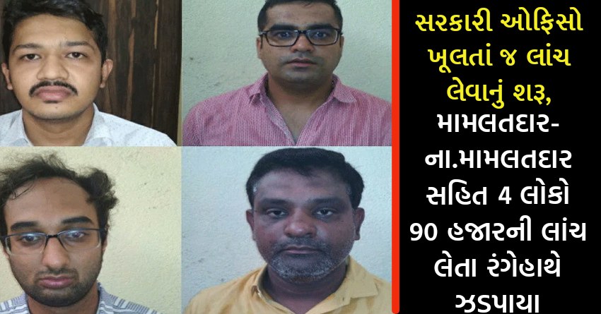 સરકારી ઓફિસો ખૂલતાં જ લાંચ લેવાનું શરૂ, મામલતદાર-ના.મામલતદાર સહિત 4 લોકો 90 હજારની લાંચ લેતા રંગેહાથે ઝડપાયા
