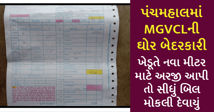 પંચમહાલમાં MGVCLની ઘોર બેદરકારી, ખેડૂતે નવા મીટર માટે અરજી આપી તો સીધું બિલ મોકલી દેવાયું