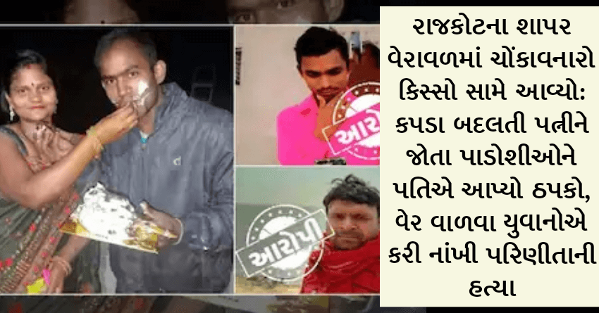 રાજકોટના શાપર વેરાવળમાં ચોંકાવનારો કિસ્સો સામે આવ્યો: કપડા બદલતી પત્નીને જોતા પાડોશીઓને પતિએ આપ્યો ઠપકો, વેર વાળવા યુવાનોએ કરી નાંખી પરિણીતાની હત્યા