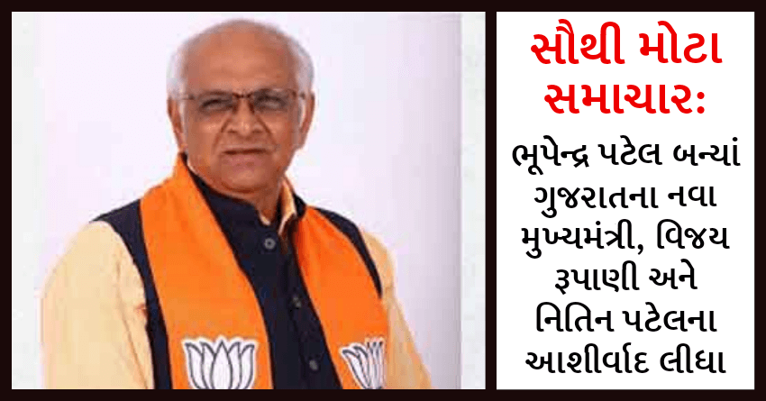 સૌથી મોટા સમાચાર: ભૂપેન્દ્ર પટેલ બન્યાં ગુજરાતના નવા મુખ્યમંત્રી, વિજય રૂપાણી અને નિતિન પટેલના આશીર્વાદ લીધા