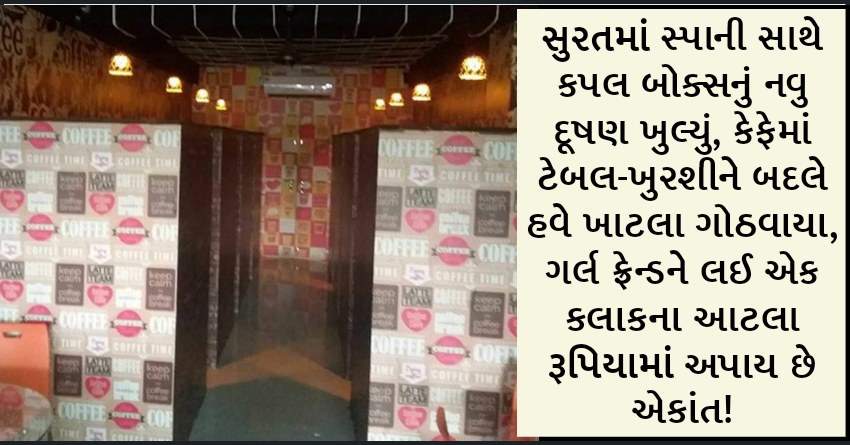 સુરતમાં સ્પાની સાથે કપલ બોક્સનું નવુ દૂષણ ખુલ્યું, કેફેમાં ટેબલ-ખુરશીને બદલે હવે ખાટલા ગોઠવાયા, ગર્લ ફ્રેન્ડને લઈ એક કલાકના આટલા રૂપિયામાં અપાય છે એકાંત!