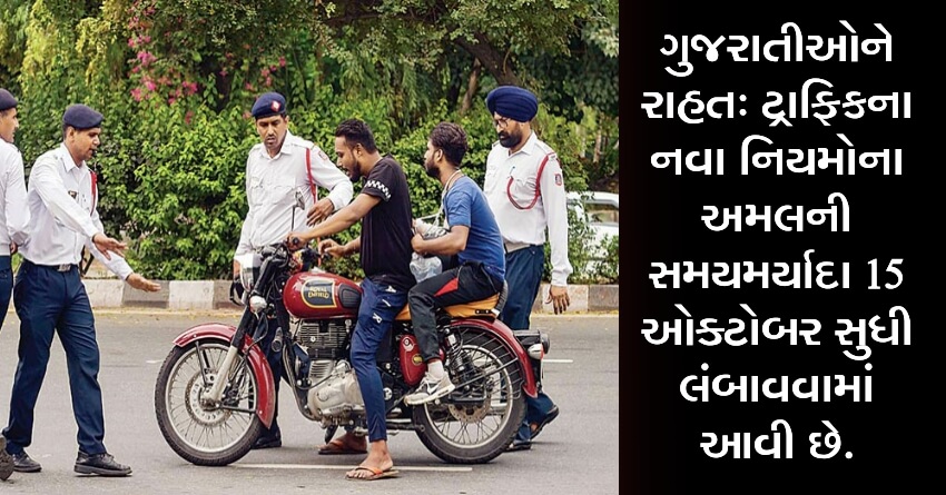ગુજરાતીઓને રાહત: 15 ઓક્ટોબર સુધી ટ્રાફિક પોલીસ નવા નિયમ પ્રમાણે દંડ નહીં ફટકારી શકે