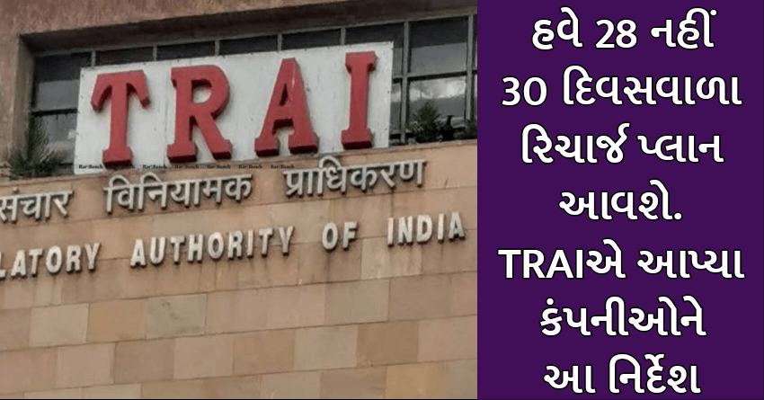 હવે 28 નહીં 30 દિવસવાળા રિચાર્જ પ્લાન આવશે. TRAIએ આપ્યા કંપનીઓને આ નિર્દેશ