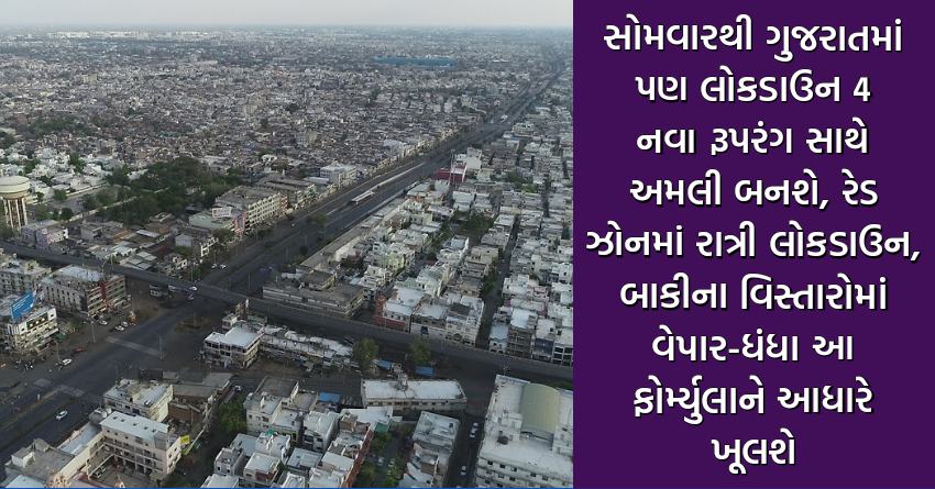 સોમવારથી ગુજરાતમાં પણ લોકડાઉન 4 નવા રૂપરંગ સાથે અમલી બનશે, રેડ ઝોનમાં રાત્રી લોકડાઉન, બાકીના વિસ્તારોમાં વેપાર-ધંધા આ ફોર્મ્યુલાને આધારે ખૂલશે