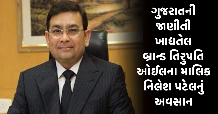 ગુજરાતની જાણીતી ખાદ્યતેલ બ્રાન્ડ તિરુપતિ ઓઈલના માલિક નિલેશ પટેલનું અવસાન