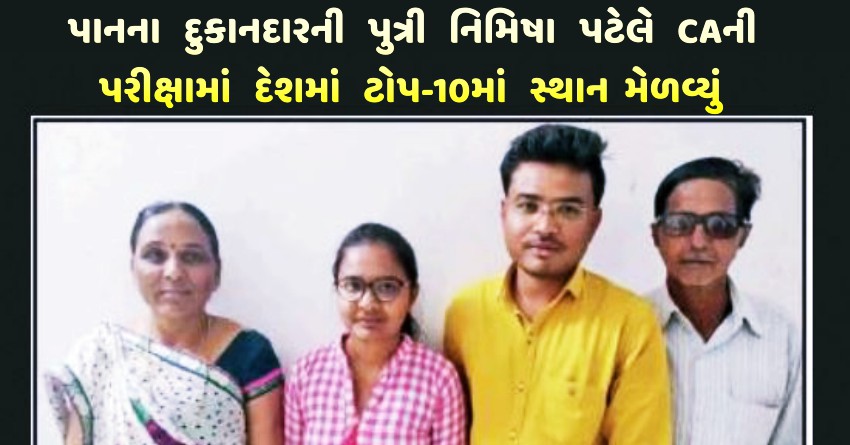 પાનના દુકાનદારની પુત્રી નિમિષા પટેલે CAની પરીક્ષામાં દેશમાં ટોપ-10માં મેળવ્યું સ્થાન