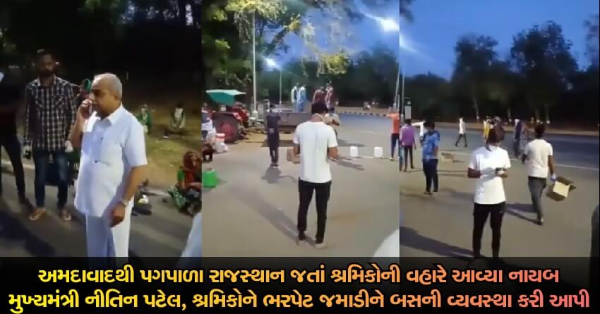 અમદાવાદથી પગપાળા રાજસ્થાન જતાં શ્રમિકોની વહારે આવ્યા નાયબ મુખ્યમંત્રી નીતિન પટેલ, શ્રમિકોને ભરપેટ જમાડીને બસની વ્યવસ્થા કરી આપી