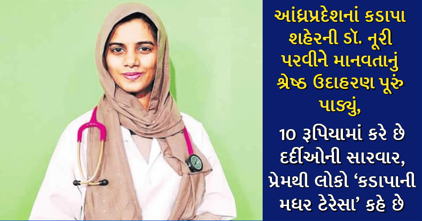આંધ્રપ્રદેશનાં કડાપા શહેરની ડૉ. નૂરી પરવીને માનવતાનું શ્રેષ્ઠ ઉદાહરણ પૂરું પાડ્યું, 10 રૂપિયામાં કરે છે દર્દીઓની સારવાર, પ્રેમથી લોકો ‘કડાપાની મધર ટેરેસા’ કહે છે