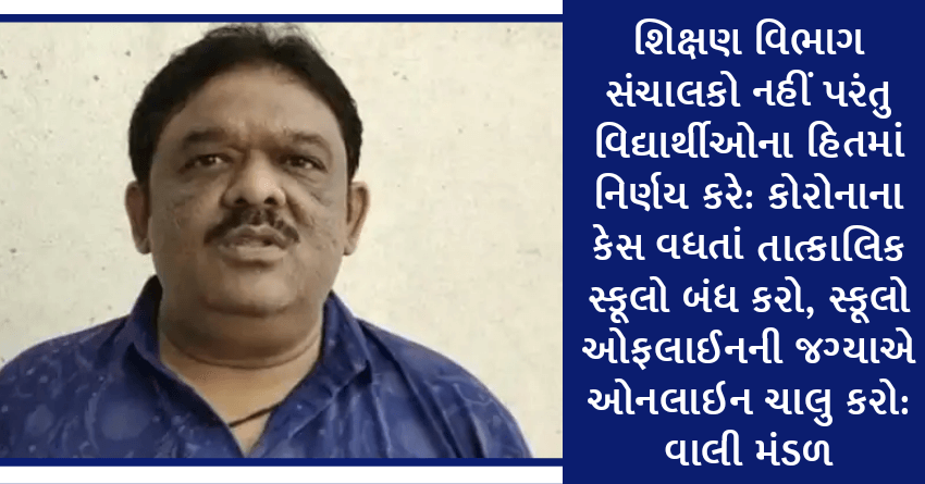 શિક્ષણ વિભાગ સંચાલકો નહીં પરંતુ વિદ્યાર્થીઓના હિતમાં નિર્ણય કરે: કોરોનાના કેસ વધતાં તાત્કાલિક સ્કૂલો બંધ કરો, સ્કૂલો ઓફલાઈનની જગ્યાએ ઓનલાઇન ચાલુ કરો: વાલી મંડળ