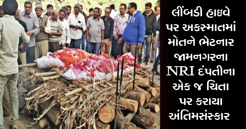 લીંબડી હાઇવે પર અકસ્માતમાં મોતને ભેટનાર જામનગરના NRI દંપતીના એક જ ચિતા પર કરાયા અંતિમસંસ્કાર