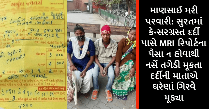 માણસાઈ મરી પરવારી: સુરતમાં કેન્સરગ્રસ્ત દર્દી પાસે MRI રિપોર્ટના પૈસા ન હોવાથી નર્સે તગેડી મૂકતા દર્દીની માતાએ ઘરેણાં ગિરવે મૂક્યા