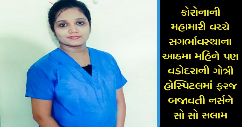 કોરોનાની મહામારી વચ્ચે સગર્ભાવસ્થાના આઠમા મહિને પણ વડોદરાની ગોત્રી હોસ્પિટલમાં ફરજ બજાવતી નર્સને સો સો સલામ