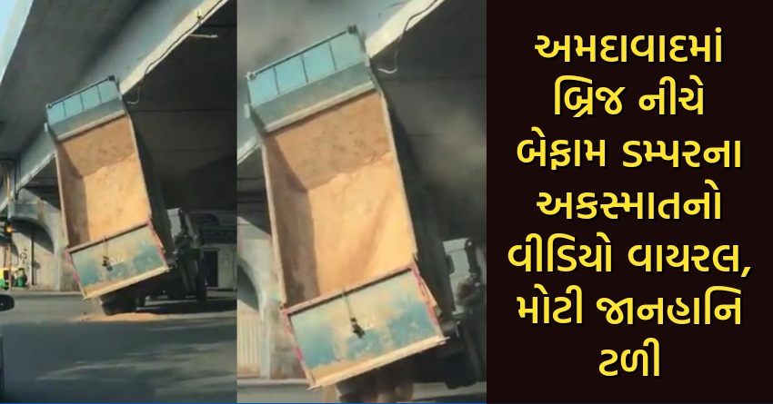અમદાવાદમાં બ્રિજ નીચે બેફામ ડમ્પરના અકસ્માતનો વીડિયો વાયરલ, મોટી જાનહાનિ ટળી