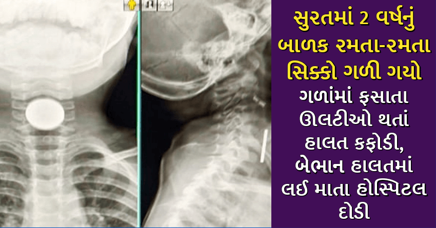 સુરતમાં 2 વર્ષનું બાળક રમતા-રમતા સિક્કો ગળી ગયો, ગળાંમાં ફસાતા ઊલટીઓ થતાં હાલત કફોડી, બેભાન હાલતમાં લઈ માતા હોસ્પિટલ દોડી