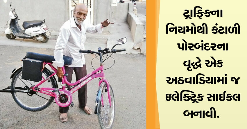 ટ્રાફિકના નિયમોથી કંટાળી પોરબંદરના વૃદ્ધે એક અઠવાડિયામાં જ ઇલેક્ટ્રિક સાઈકલ બનાવી