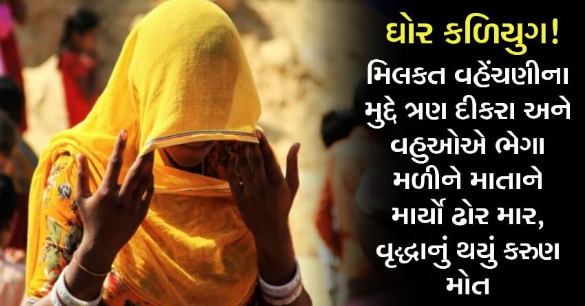 ઘોર કળિયુગ! મિલકત વહેંચણીના મુદ્દે ત્રણ દીકરા અને વહુઓએ ભેગા મળીને માતાને માર્યો ઢોર માર, વૃદ્ધાનું થયું કરુણ મોત