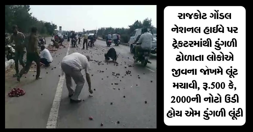 રાજકોટ ગોંડલ નેશનલ હાઈવે પર ટ્રેકટરમાંથી ડુંગળી ઢોળાતા લોકોએ જીવના જોખમે લૂંટ મચાવી, રૂ.500 કે, 2000ની નોટો ઉડી હોય એમ ડુંગળી લૂંટી