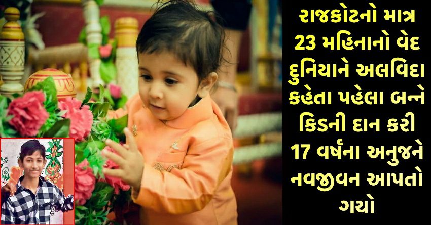 રાજકોટનો માત્ર 23 મહિનાનો વેદ દુનિયાને અલવિદા કહેતા પહેલા બન્ને કિડની દાન કરી 17 વર્ષના અનુજને નવજીવન આપતો ગયો
