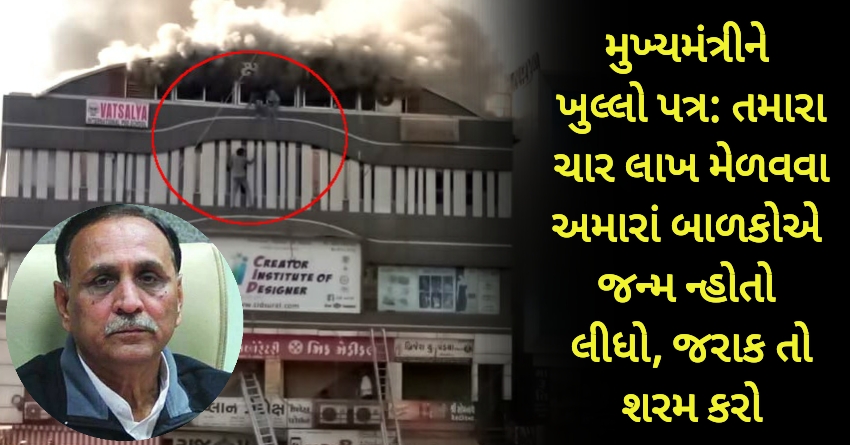 સૌથી મોટી મજાક તો તમારા જ વરિષ્ઠ મંત્રીઓ ઊડાવી રહ્યા છે. શિક્ષણમંત્રીએ દુર્ઘટનાની સાંજે જ સજીધજીને મીડિયા સમક્ષ નિવેદન આપી દીધું અને કોર્પોરેશનને જવાબદાર ઠરાવીને ચાલતી પકડી, કેમ જાણે કોર્પોરેશનમાં પાકિસ્તાનની સરકારનું શાસન હોય! પછી મોડી રાત્રે ખબર પડી કે શિક્ષણમંત્રી નવી બંડી પહેરીને કેમ નીકળ્યા હતા અને શા માટે ઉતાવળમાં હતા. આગમાં હોમાયેલા બાળકોની કારમી ચિચિયારીએ શિક્ષણમંત્રીના ચિતતંત્રને એટલી હદે ઝકઝોરી દીધું હતું કે તેમાંથી બહાર નીકળવા તેમણે એ જ રાત્રે ડાયરાના લલકારા સાંભળવા જવું પડ્યું. તમારી સરકારના શિક્ષણમંત્રી, તમારા પક્ષના નેતાઓ હસતાં ચહેરે સુરતના હોમાયેલા બાળકો માટે ડાયરામાં બે મિનિટનું મૌન પાળી રહ્યા હતા ત્યારે સાચું કહું સાહેબ, આખા ગુજરાતના ગળામાંથી લાચારી, વિવશતાનો નિઃશ્વાસ નીકળી રહ્યો હતો.