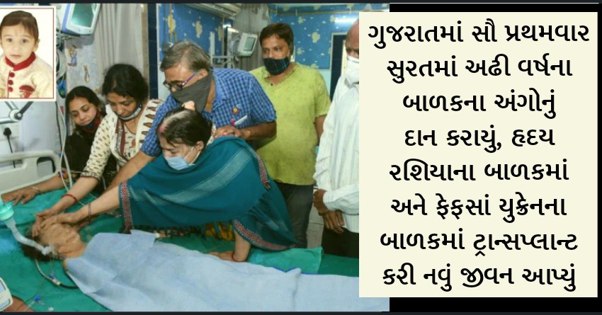 ગુજરાતમાં સૌ પ્રથમવાર સુરતમાં અઢી વર્ષના બાળકના અંગોનું દાન કરાયું, હૃદય રશિયાના બાળકમાં અને ફેફસાં યુક્રેનના બાળકમાં ટ્રાન્સપ્લાન્ટ કરી નવું જીવન આપ્યું