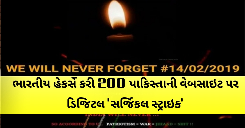 ભારતીય હેકર્સે પાકિસ્તાન પર ડિજિટલ સર્જિકલ સ્ટ્રાઈક કરી છે. પાકિસ્તાનની 200થી વધુ સરકારી વેબસાઈટ હેક કરી લીધી છે. જેમાંથી 50 વેબસાઈટનું લીસ્ટ સામે આવ્યું છે. એટલું જ નહીં છેલ્લા 72 કલાકથી વધુ સમયથી આ પાકિસ્તાની વેબસાઈટ હેકર્સના કબજામમાં હોવાનો દાવો કરાયો છે. જે વેબસાઈટ હેક થઈ છે તેને ઓપન કરતા જ એક મેસેજ સામે આવે છે. જેમાં લખ્યું છે કે, અમે અમારા જવાનોની શહાદત ક્યારેય નહીં ભૂલીએ.