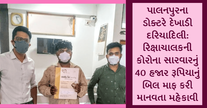 પાલનપુરના ડોક્ટરે દેખાડી દરિયાદિલી: રિક્ષાચાલકની કોરોના સારવારનું 40 હજાર રૂપિયાનું બિલ માફ કરી માનવતા મહેકાવી