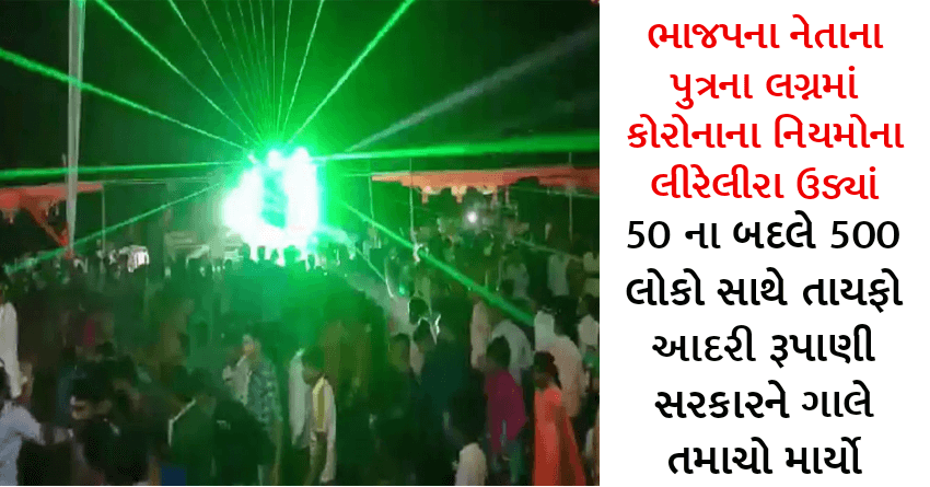 ભાજપના નેતાના પુત્રના લગ્નમાં કોરોનાના નિયમોના લીરેલીરા ઉડ્યાં, 50 ના બદલે 500 લોકો સાથે તાયફો આદરી રૂપાણી સરકારને ગાલે તમાચો માર્યો