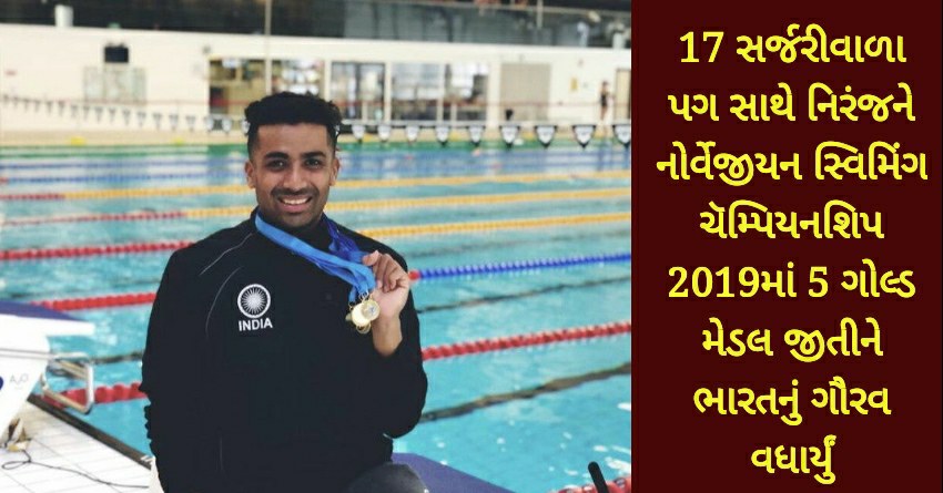 17 સર્જરીવાળા પગ સાથે નિરંજને નોર્વેજીયન સ્વિમિંગ ચૅમ્પિયનશિપ 2019માં 5 ગોલ્ડ મેડલ જીતીને ભારતનું ગૌરવ વધાર્યું