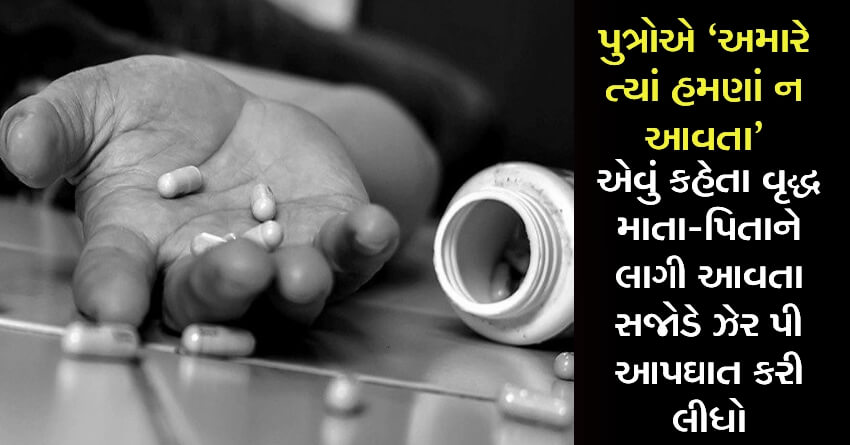 પુત્રોએ “અમારે ત્યાં હમણાં ન આવતા” એવું કહેતા વૃદ્ધ માતા-પિતાને લાગી આવતા સજોડે ઝેર પી આપઘાત કરી લીધો
