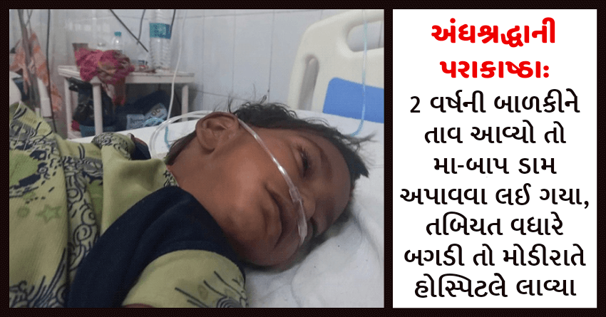 અંધશ્રદ્ધાની પરાકાષ્ઠા: 2 વર્ષની બાળકીને તાવ આવ્યો તો મા-બાપ ડામ અપાવવા લઈ ગયા, તબિયત વધારે બગડી તો મોડીરાતે હોસ્પિટલે લાવ્યા