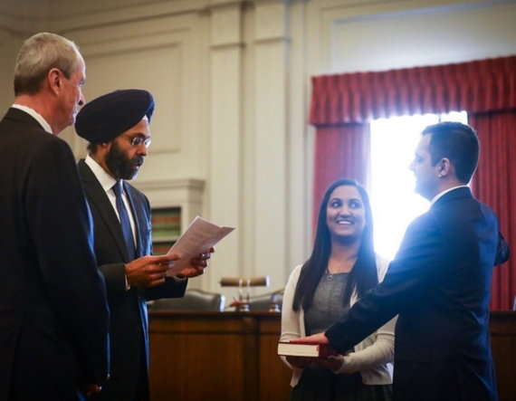 પટેલને ન્યૂજર્સીના એટર્ની જનરલ ગુરબીર ગ્રેવાલ, કે જેઓ પોતે જ આ સ્ટેટમાં વકીલ તરીકેનો હોદ્દો સંભાળનારા પ્રથમ ઇન્ડિયન અમેરિકન છે, તેમણે હોદ્દાના શપથ લેવડાવ્યા હતા. ન્યૂજર્સીના ગર્વનર ફિલ મર્ફીની હાજરીમાં પાર્થિવ પટેલે હોદ્દો ગ્રહણ કર્યો હતો. આ પ્રસંગે તેમના પત્ની સારીકા પણ હાજર રહ્યા હતા.