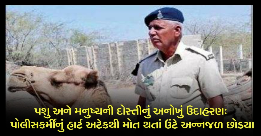 માણસ અને પશુ વચ્ચેની દોસ્તી નિસ્વાર્થ અને પવિત્ર હોય છે. કૂતરાને હંમેશા માણસનો બેસ્ટ ફ્રેંડ ગણવામાં આવે છે. તમે અવારનાવર સાંભળ્યું હશે કે કૂતરાનો માલિક અથવા તેને ઘરમાં સૌથી વધુ ગમતી વ્યક્તિ ના હોય ત્યારે તે ઉદાસ રહે છે, ખાતો-પીતો નથી. પાળેલા પશુ અને તેના માલિક વચ્ચે પ્રેમ હોય તે સ્વાભાવિક છે પરંતુ ફરજ બજાવતા પશુ અને મનુષ્ય વચ્ચે આવો સંબંધ ભાગ્યે જ જોવા મળતો હશે. વાત કચ્છની છે. જખઉ પોલીસ સ્ટેશનના એક ઊંટે ખાવા-પીવાનું છોડી દીધું છે. ઊંટની સંભાળ રાખતા આસિસ્ટન્ટ સબ ઈન્સ્પેક્ટર શિવરાજ ગઢવીનું પિંગલેશ્વરમાં પેટ્રોલિંગ દરમિયાન હાર્ટ અટેકના કારણે મોત થયું. બસ ત્યારથી જ આ ઊંટે અન્નજળનો ત્યાગ કર્યો.
