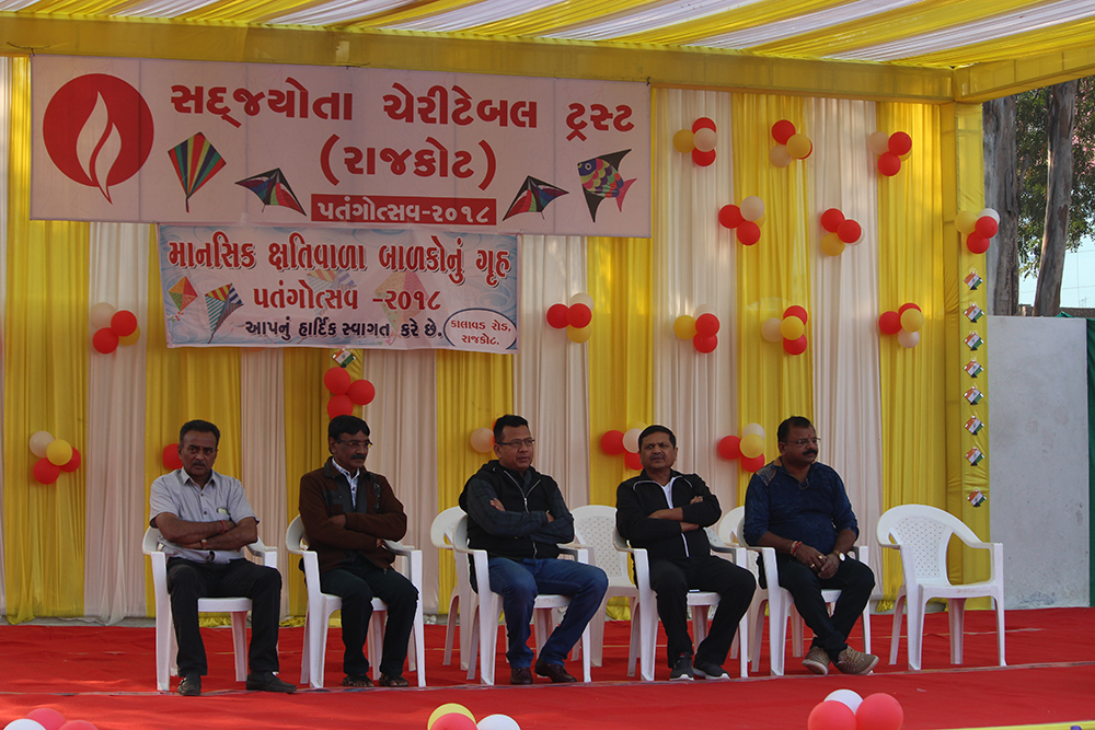 તા.૧૪,રાજકોટ: રાજકોટનાં કાલાવડ રોડ પર આવેલ માનસિક ક્ષતીવાળા બાળકોના ગૃહમાં ઉતરાયણ નિમિતે રાજકોટની સેવાભાવી સંસ્થા “સદ્જ્યોતા ચેરીટેબલ ટ્રસ્ટ” દ્વારા માનસિક ક્ષતીવાળા બાળકો સાથે પતંગોત્સવ ઉજવવાનું આયોજન કરી સામાજીક સેવામાં એક નવી જ પહેલ કરવામાં આવી હતી. કાર્યક્રમનાં અધ્યક્ષ સ્થાને ખોડલધામ ટ્રસ્ટનાં ચેરમેન નરેશભાઈ પટેલ તથા કાર્યક્રમનાં મુખ્ય મહેમાન તરીકે રાજકોટ શહેર પોલીસ કમિશ્નર અનુપમસિંહ ગેહલોત હાજર રહ્યા હતા.