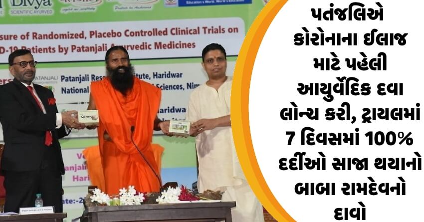 પતંજલિએ કોરોનાના ઈલાજ માટે પહેલી આયુર્વેદિક દવા લોન્ચ કરી, ટ્રાયલમાં 7 દિવસમાં 100% દર્દીઓ સાજા થયાનો બાબા રામદેવનો દાવો