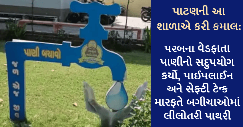 પાટણની આ શાળાએ કરી કમાલ: પરબના વેડફાતા પાણીનો સદુપયોગ કર્યો, પાઈપલાઈન અને સેફ્ટી ટેન્ક મારફતે બગીચાઓમાં લીલોતરી પાથરી