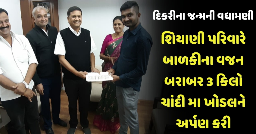શિયાણી પરિવારે બાળકીના વજન બરાબર 3 કિલો ચાંદી મા ખોડલને અર્પણ કરી