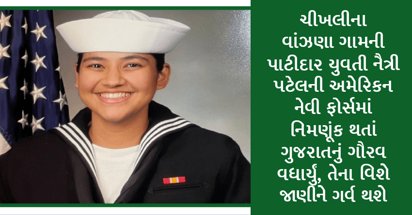 ચીખલીના વાંઝણા ગામની પાટીદાર યુવતી નૈત્રી પટેલની અમેરિકન નેવી ફોર્સમાં નિમણૂંક થતાં ગુજરાતનું ગૌરવ વધાર્યું, તેના વિશે જાણીને ગર્વ થશે