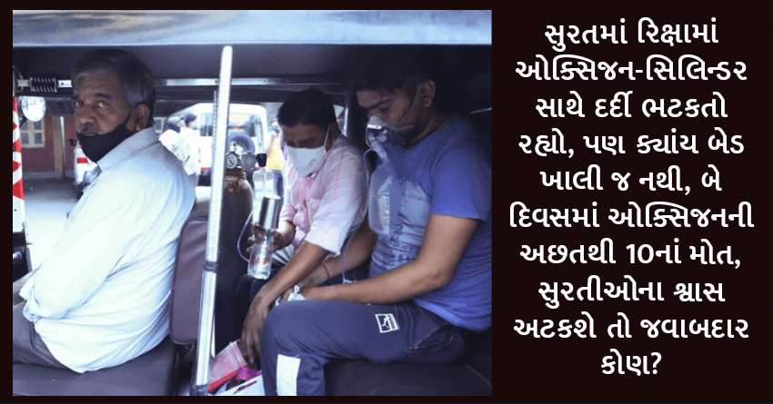 સુરતમાં રિક્ષામાં ઓક્સિજન-સિલિન્ડર સાથે દર્દી ભટકતો રહ્યો, પણ ક્યાંય બેડ ખાલી જ નથી, બે દિવસમાં ઓક્સિજનની અછતથી 10નાં મોત, સુરતીઓના શ્વાસ અટકશે તો જવાબદાર કોણ?