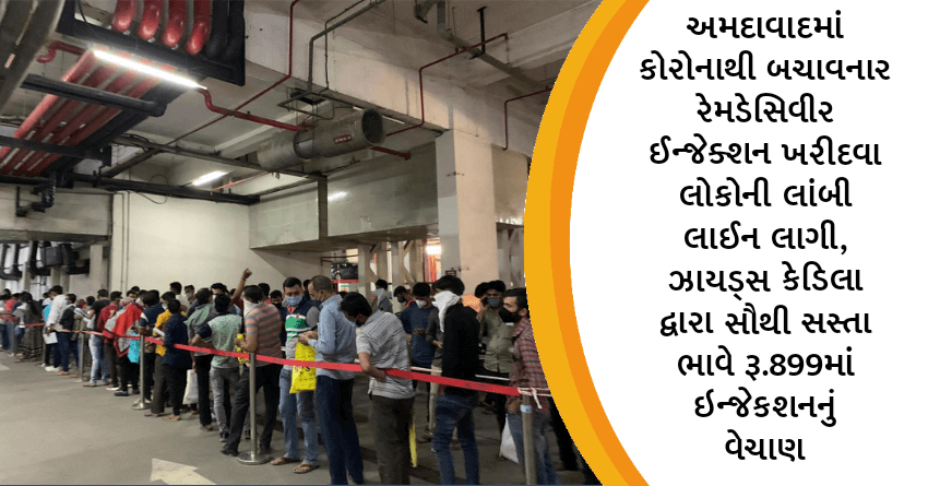 અમદાવાદમાં કોરોનાથી બચાવનાર રેમડેસિવીર ઈન્જેક્શન ખરીદવા લોકોની લાંબી લાઈન લાગી, ઝાયડ્સ કેડિલા દ્વારા સૌથી સસ્તા ભાવે રૂ.899માં ઇન્જેકશનનું વેચાણ