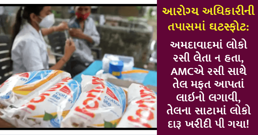 આરોગ્ય અધિકારીની તપાસમાં ઘટસ્ફોટ: અમદાવાદમાં લોકો રસી લેતા ન હતા, AMCએ રસી સાથે તેલ મફત આપતાં લાઇનો લગાવી, તેલના સાટામાં લોકો દારૂ ખરીદી પી ગયા!