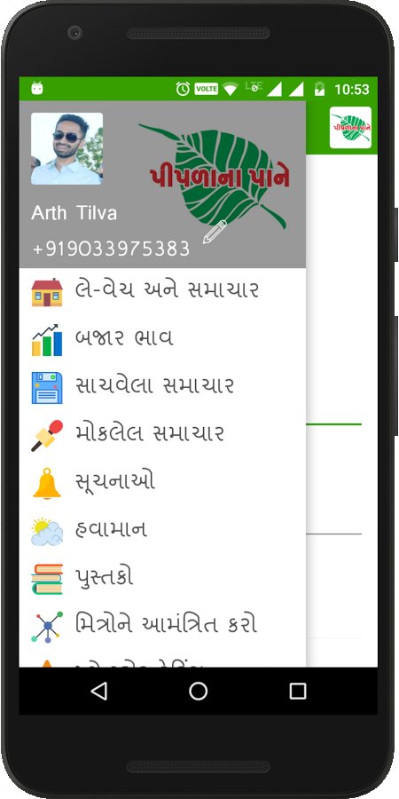 પીપળાના પાને “ગુજરાતી એપ્લિકેશન કૃષિ, બાગાયત, વેટરનરીના ખેડૂતોના સમુદાયની જરૂરિયાત પૂરી કરવા માટે દિનેશ ટીલવાએ એપ્લિકેશન બનાવી છે, દિનેશે Tilva Artsoft દ્વારા એપ્લિકેશનની ડિઝાઇન વિકસાવી છે. આ એપ ગામડામાં રહેતાં ઓછું ભણેલ અથવા કહો કે અંગુઠાછાપ લોકો પણ સરળતાથી વાપરી શકે અને પોતાના દરેક પ્રશ્નનોના જવાબ મેળવી શકે તે માટે બનાવેલી છે.