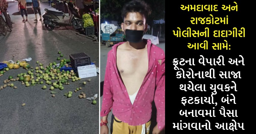 અમદાવાદ અને રાજકોટમાં પોલીસની દાદાગીરી આવી સામે: ફ્રૂટના વેપારી અને કોરોનાથી સાજા થયેલા યુવકને ફટકાર્યા, બંને બનાવમાં પૈસા માંગવાનો આક્ષેપ