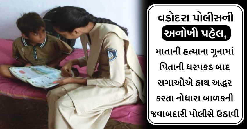 વડોદરા પોલીસની અનોખી પહેલ, માતાની હત્યાના ગુનામાં પિતાની ધરપકડ બાદ સગાઓએ હાથ અદ્ધર કરતા નોધારા બાળકની જવાબદારી પોલીસે ઉઠાવી