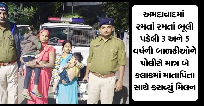 અમદાવાદમાં રમતાં રમતાં ભૂલી પડેલી 3 અને 5 વર્ષની બાળકીઓને પોલીસે માત્ર બે કલાકમાં માતાપિતા સાથે કરાવ્યું મિલન