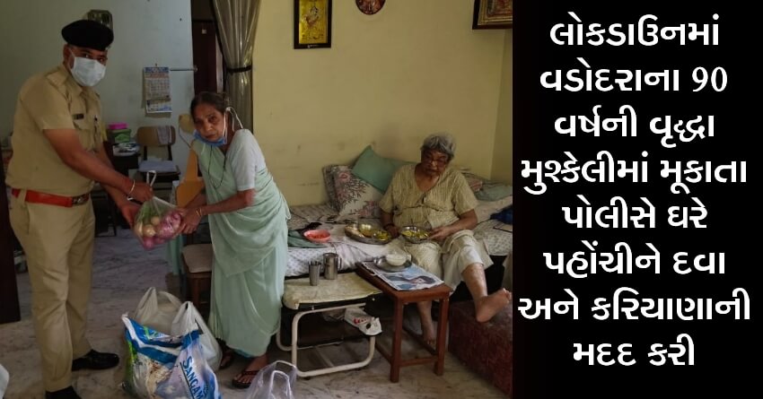 લોકડાઉનમાં વડોદરાના 90 વર્ષની વૃદ્ધા મુશ્કેલીમાં મૂકાતા પોલીસે ઘરે પહોંચીને દવા અને કરિયાણાની મદદ કરી