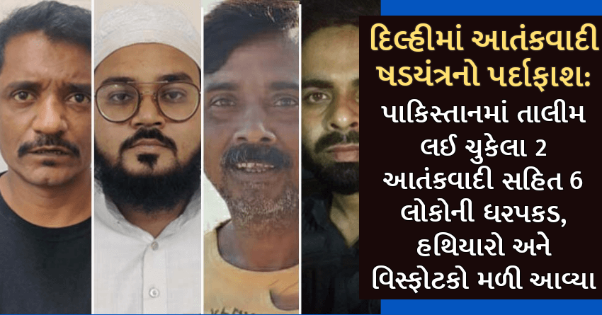 દિલ્હીમાં આતંકવાદી ષડયંત્રનો પર્દાફાશ: પાકિસ્તાનમાં તાલીમ લઈ ચુકેલા 2 આતંકવાદી સહિત 6 લોકોની ધરપકડ, હથિયારો અને વિસ્ફોટકો મળી આવ્યા