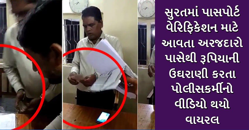 સુરતમાં પાસપોર્ટ વેરિફિકેશન માટે આવતા અરજદારો પાસેથી રૂપિયાની ઉઘરાણી કરતા પોલીસકર્મીનો વીડિયો થયો વાયરલ