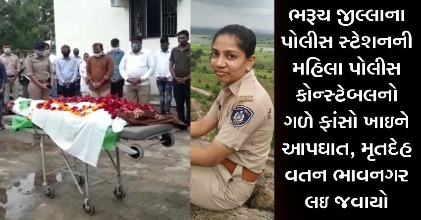 ભરૂચ જીલ્લાના પોલીસ સ્ટેશનની મહિલા પોલીસ કોન્સ્ટેબલનો ગળે ફાંસો ખાઇને આપઘાત, મૃતદેહ વતન ભાવનગર લઇ જવાયો